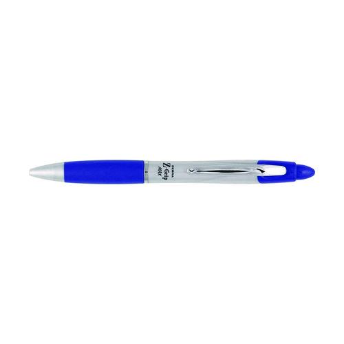 Product Details** Global Product Type Ballpoint Pens Pen Style Retractable Pen Tip Type Conical Pen Point Size Type Medium Color Family Blue Erasable Ink No Refillable No Pen Sub-Brand & Product Family Z-Grip® MAX Pen Type Ballpoint Pen Pen Point Size 1 mm Pen Ink Color(s) Blue Pen Barrel Color(s) Silver/Blue Airplane-Safe Ink Yes Low-Viscosity Ink No Pen Grip Type Soft Rubber Visible Ink Supply No Pocket Clip Indicator Yes Product Biodegradability in Days 0 Pre-Consumer Recycled Content Percent 0% Post-Consumer Recycled Content Percent 0% Total Recycled Content Percent 0% Country Of Origin CN Carton Weight 39 lbs. Carton Pack Quantity 96 DZ Pack Quantity 0 UPC 045888224209 UNSPSC 44121704 Shipping Weight & Item Dimensions Weight 0.347 lbs. Length 7.5 in Height 1.5 in Width 2.75 in