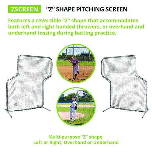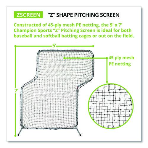 The multi-purpose Champion Sports Z Pitching Screen serves as a protective screen for both overhand and underhand throwers on the field. Pitchers and coaches can now safely pitch to batters during practice, without the concern of getting struck by a line-drive. The reversible “Z” shape accommodates both left- and right-handed throwers over overhand/underhand tossing. Ideal for baseball and softball batting cage or out on the field. The Z Pitching Screen is constructed of 45-ply mesh polyethylene netting.